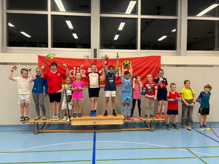 nicht nur Ski fahren – auch in der Turnhalle mit dem Unihockeystock haben alle richtig viel
